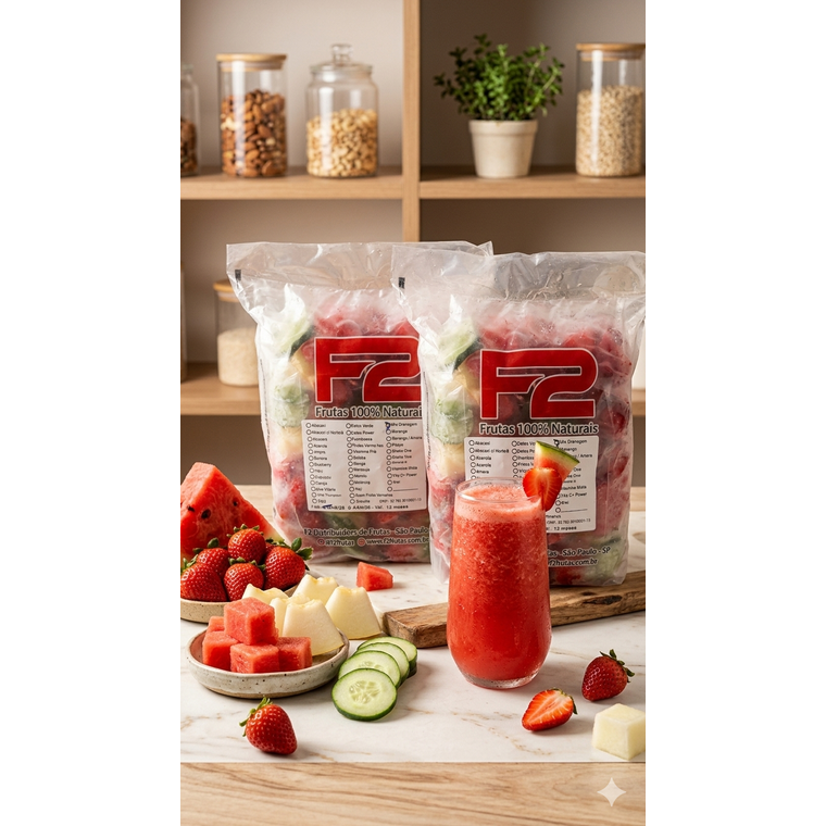 O Mix Drenagem contém melancia, melão, morango e pepino, a combinação perfeita para um suco funcional.