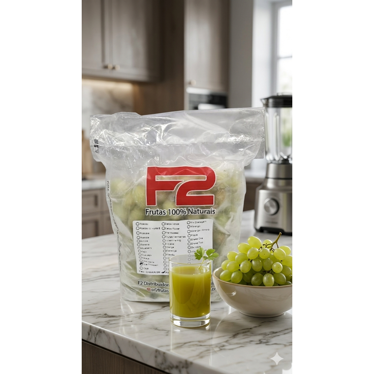 Uva tipo "Thopson" sem semente, inteira e congelada individualmente.