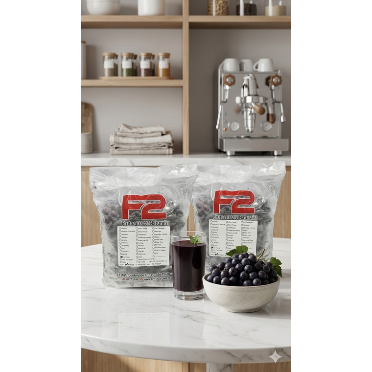 Uva tipo "Vitória" sem semente, inteira e congelada individualmente.